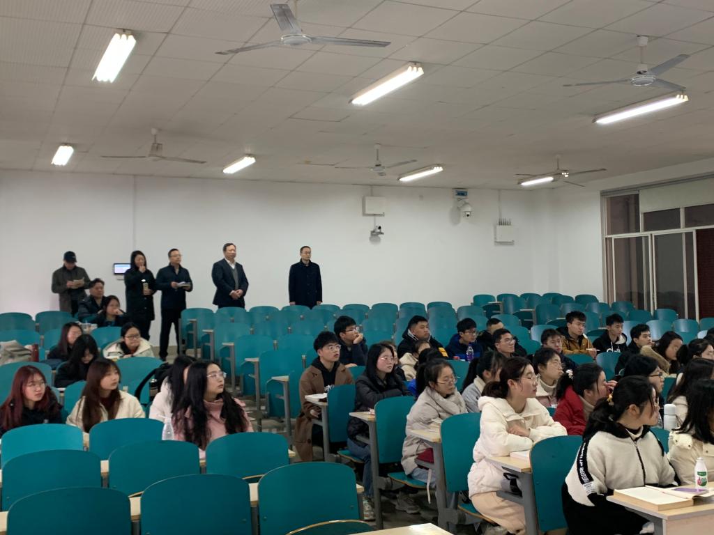 曾祥君副校长在书记宋刘斌、副书记陶双、副院长陈启杰飞的陪同下到综合教学楼检查了学院任课老师出勤、备课、授课和学生到课率、听课等情况。曾副校长了解了学生返校情况,并对开学准备工作给予了肯定。从检查情况来看,新学期各项教学工作准备充分,教师精神面貌好、认真上课,学生学习状态好、专注听讲,教学秩序井然有序,教师授课和学生听课情况良好。