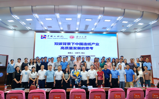 王双飞院士从“双碳”的背景、造纸产业发展的现状、如何在“双碳”背景下发展造纸产业等方面,详细阐述了造纸产业是与国民经济和社会事业发展关系密切的重要基础原材料产业,纸和纸板的消费水平是衡量一个国家现代化水平和文明程度的标志。造纸产业具有资金技术密集、规模经济效益显著的特点,产业关联度强,是可持续发展特点的重要产业。目前,我国是造纸大国,但还不是造纸强国。据预计造纸产业还将继续迎来30~60年持续的发展阶段。在“双碳”背景下,对造纸产业发展和升级是一个非常好的契机,目前面临的问题有:造纸产业需要大量的原材料、环保要求高、制浆造纸核心装备和特种纸品被国外垄断、造纸产业的能源结构不合理、造纸产业急需高端人才(含本科生)等。指出造纸产业应进一步优化造纸产业结构、推进林纸一体化建设,提高林业碳汇,积极参与碳汇交易、加强废纸再生利用、改善能源结构、坚持科技创新,研发节能技术与装备等。报告最后,王院士从搭建平台、组建团队、凝炼特色、服务社会等方面,结合广西大学轻工技术与工程学科的发展情况,阐述了高校如何依托科技自主创新的支撑,根据国家战略发展需要,推动相关产业低碳、绿色、高质量发展。