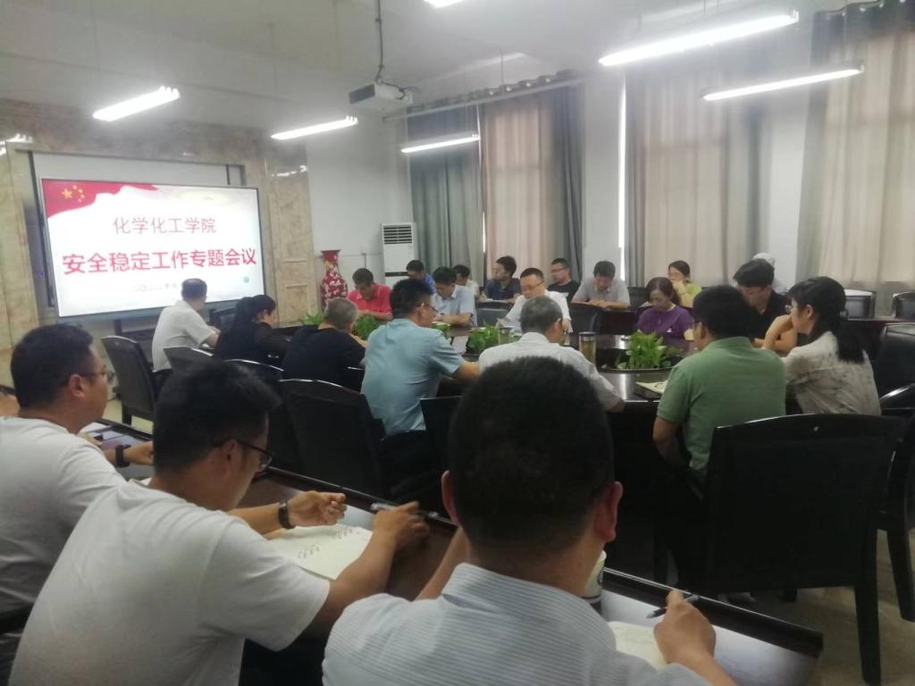 为进一步落实上级有关精神,压实安全稳定责任,2022年9月20日下午,化学化工学院召开安全稳定工作专题会议,学院科研团队负责人、中层以上干部、学生辅导员参加了会议。