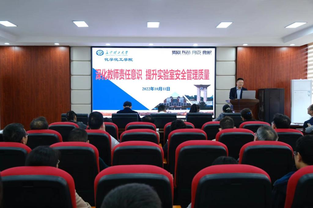 副院长卿志和做了题为《深化教师责任意识 提升实验室安全管理质量》的宣讲,他从实验室安全之痛点、导师安全管理之不足、我院实验室概况三个方面对我院的安全工作做出了部署,并要求全体教职工认真落实好《实验室制度汇编》、《开云kaiyun体育实验室安全责任追究实施细则(试行)》等制度和文件精神。他代表学院与相关教师签订《化学化工学院2022-2023学年实验室安全责任书》,并强调,导师是实验室安全事故的重要责任人。卿志和通过列举事故案例,为全院教职工敲响安全警钟。