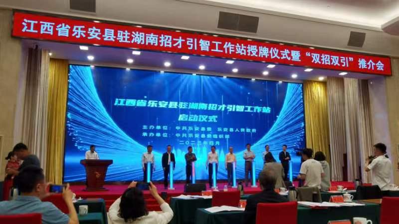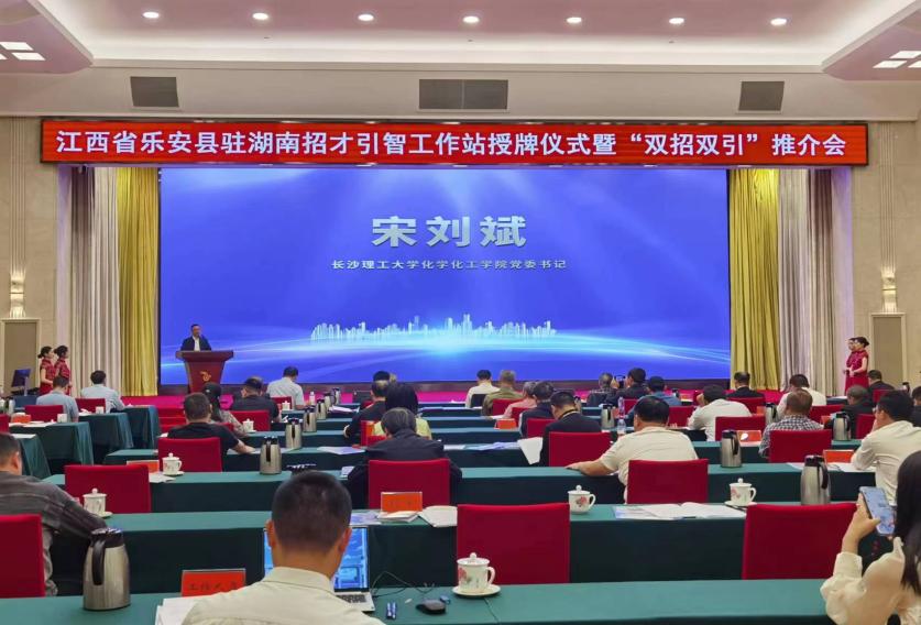 4月16日,江西省乐安县驻湖南招才引智工作站授牌仪式暨“双招双引”推介会在长沙举行,我院党委书记宋刘斌带领肖忠良教授、赵亭亭博士,应邀参加了此次会议。