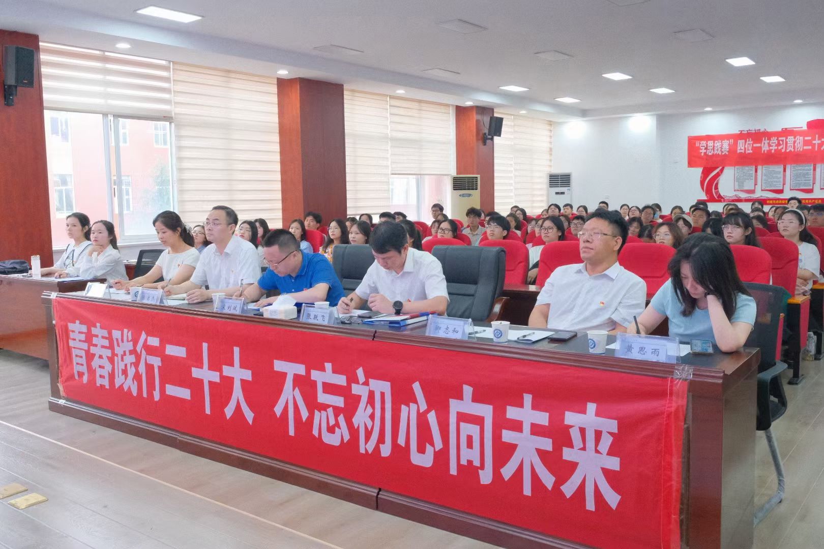 “学习党的二十大精神还在继续进行,希望大家能走近时代、走近人民,用马克思主义思想指导实践、用习近平新时代中国特色社会主义思想培根铸魂、用奋斗实现人生的价值,心怀国之大者,为祖国建设添砖加瓦”,副院长(主持工作)张跃飞致辞,并祝愿此次阶段汇报取得圆满成功。