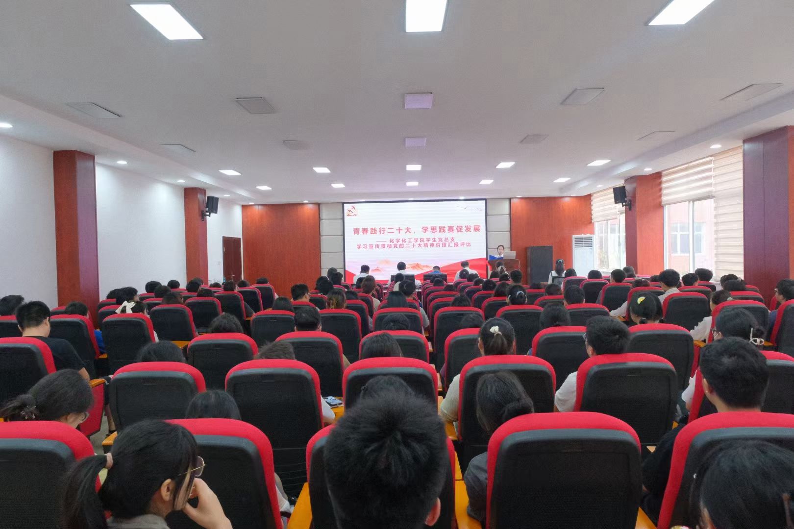 在全国上下深入学习贯彻党的二十大精神之际,开云kaiyun体育化学化工学院学生党总支梳理凝练近半年来各支部优秀的工作方法和学习成果,用实际行动持续提升基层党建的标准化、规范化、品牌化水平,推动党支部之间互学互鉴,为各支部赋能。6月6日,化学化工学院在工三A320开展“青春践行二十大,学思践赛促发展”的学习贯彻党的二十大精神阶段汇报评比活动,全体学生党员参加,学院领导班子和相关老师出席,会议由学生党总支宣传委员胡东妮主持。