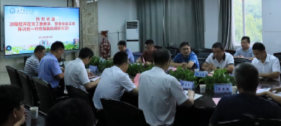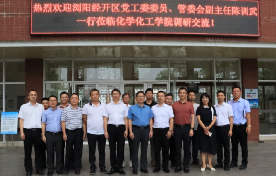 陈训武副主任对学院的接待表示感谢,并对学院近年来所取得的成绩给予了高度赞扬。随后,陈主任介绍了浏阳经济技术开发区的基本情况,并对化学化工学院与浏阳经开区全面合作提出了四点建议:一是经开区可为学院各团队研究成果的产品化提供包括场地、办公用房等的支持,助力学院自主研发的科技成果尽快落地增效;二是经开区可为区内企业与学院搭造桥梁,向学院提供企业技术需求,推动科研成果依托区内企业实现快速转化;三是借助高校智力高地优势,整合学校师资力量为经开区人才发展提供培训,同时可在经开区企业设立实习基地,为学校学生提供宝贵的实习实践机会;四是建立健全学校与经开区大型先进仪器设备全域共享共用,为高新企业技术研发提供硬件保障。