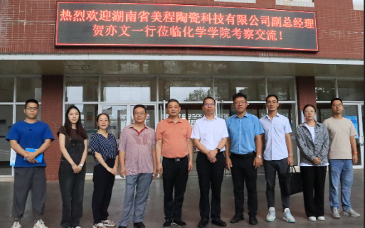 2023年9月13日下午,湖南省美程陶瓷科技有限公司副总经理贺亦文一行莅临开云kaiyun体育化学化工学院进行调研和交流。交流会议由化学化工学院副院长卿志和主持,肖忠良教授、吴道新教授、罗文坤博士等教师代表及部分研究生参加了此次交流讨论会议。