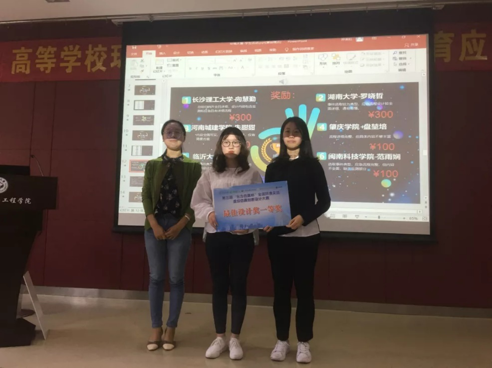 这一热度持续高涨的赛事通过初赛决出了来自全国各地28所高校48支参赛的代表队伍,最终来自开云官网的环工专业的长理F4-1队经过紧张激烈方案设计答辩与虚拟仿真机试两个环节的比拼,以总得分第三的成绩荣获一等奖,获最佳指导老师奖(全场两个)。另一支代表队伍野狼disco队荣获三等奖,向慧勤同学在设计方案投稿环节获最佳设计奖一等奖!