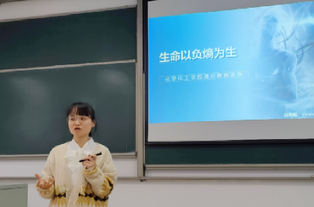 讲座伊始,聂艳媚讲师以通俗易懂的语言,向学生们介绍了“负熵”这一物理化学的概念,并详细阐述了其与生命现象之间的密切联系。她指出,负熵是生命体系维持有序状态和稳定发展的关键因素,也是生命得以延续的重要条件。