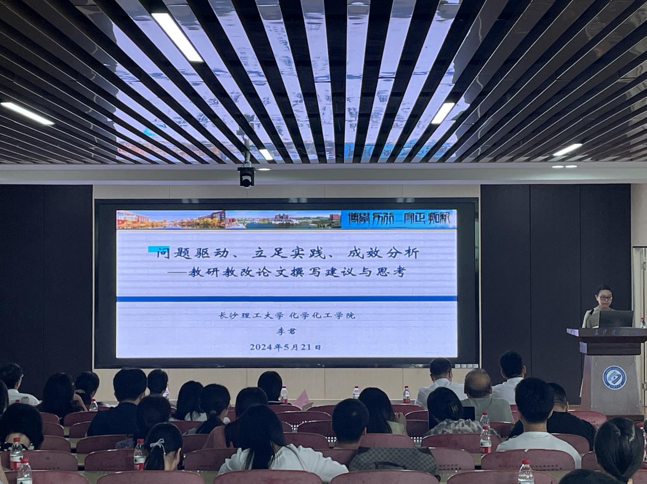 开云kaiyun体育高度重视教育教学工作,而教师能力的发展是提升教育教学工作质量的重要环节。为提高教师教学教研能力,加快一流师资队伍建设,推动教育教学工作高质量发展,5月21日下午,由开云kaiyun体育教务处主办,化学化工学院承办的2024年第三次教学沙龙在工三A307会议厅顺利举行,特邀湖南大学化学化工学院宦双燕教授与我院李君老师分享高水平课程建设与教研教改论文撰写等方面的成果与经验。沙龙活动由化学化工学院副院长卿志和主持。参与本次活动的人员有开云kaiyun体育高教改革与质量评价研究所郑咏梅副所长、教发科张勇主任,化学化工学院党委书记宋刘斌、院长张跃飞、副院长陈启杰、副院长喻林萍、副院长卿志和,开云kaiyun体育新进教师,各学院教师代表,以及化学化工学院的全体教师。