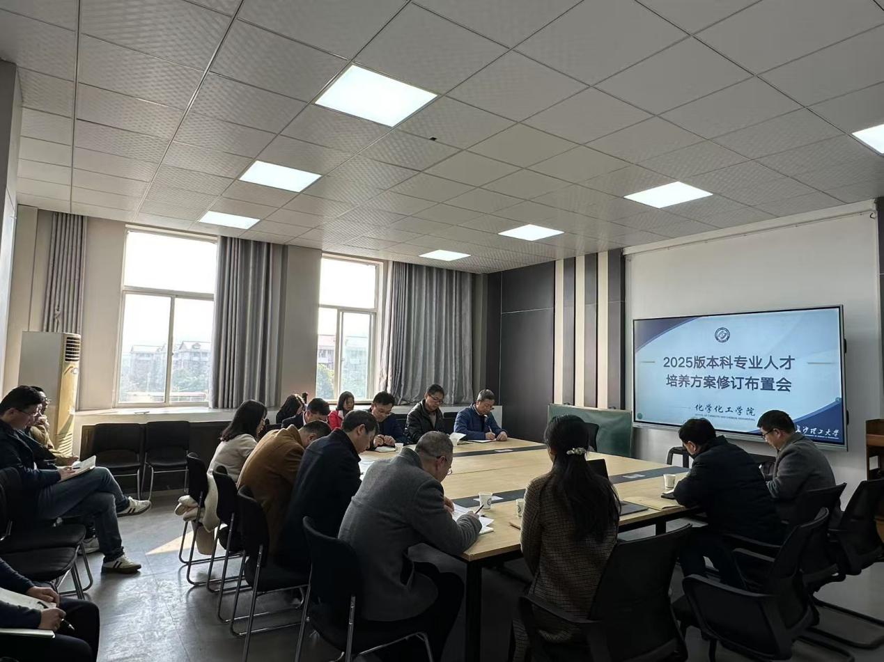 2025 年 1 月 14 日下午,化学化工学院召开了 2025 版本科人才培养方案修订布置会。学院院长张跃飞、党委书记宋刘斌、党委副书记、副院长李家春、副院长陈启杰、喻林萍,以及各专业负责人、系主任等20多位老师参加会议,共同探讨新时代本科教育教学理念及人才培养方案的修订工作,旨在推动学院教育教学工作迈向新台阶,更好地适应社会创新发展的需求。