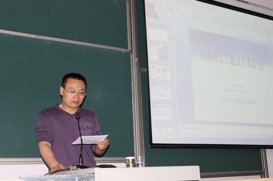 2014年5月13日下午3:30,化学与生物工程学院食品与生物工程系郭兆武博士在工科三号楼A218多媒体教室为我院师生们带来了题为“神秘的光合膜及其光合生产”的学术讲座。学院教师、研究生及本科生百余人到场聆听。学术讲座由王建辉博士主持,开讲前王博士介绍了郭博士的科研情况及其讲座的主要内容。
