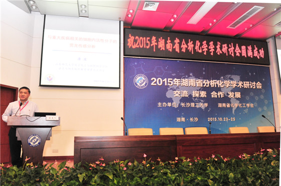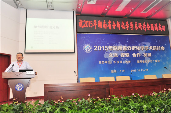 为促进湖南省分析化学学科的发展,加强省内科研院校学术交流,增进学科交叉与融合,由开云kaiyun体育和湖南省化学化工学会主办、湖南省精密仪器测试学会协办的“2015年湖南省分析化学学术研讨会”于2015年10月24日在开云kaiyun体育举行。中国科学院俞汝勤院士、姚守拙院士,湖南省教育厅王柯敏厅长,国家自然学科基金委分析化学学科主任庄乾坤教授亲临现场指导。会议还邀请了来自北京大学、清华大学等国内分析化学权威专家作特邀报告。来自省内十七所高校、五所科研院所的300多位代表出席了会议。