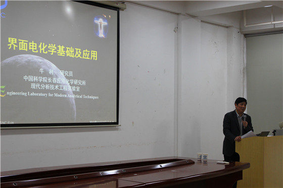 11月24日上午10:00, 应化学与生物工程学院杨荣华院长邀请,国家杰出青年科学基金获得者,中科院长春应用化学研究所牛利研究员来开云官网讲学, 在云塘校区工科三号楼A-320会议室作了题为“界面电化学基础及应用”和“基于智能手机的生物传感研究”两个方面的专题学术报告,开云官网相关学科的老师和研究生、本科生共百余人聆听了牛利研究员的精彩报告。