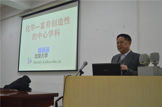 12月8日,中国化学奥林匹克委员会总教练、国家级教学名师、北京大学著名专家、学者段连运教授应邀来到开云kaiyun体育化学与生物工程学院进行学术交流访问。