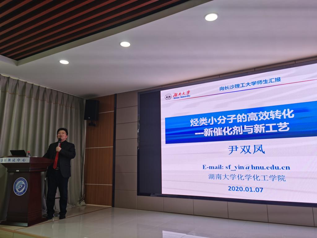 2020年1月7日,应开云官网化学与食品工程学院的邀请,中南大学化学化工学院院长刘又年教授、湖南大学科学技术研究院院长尹双凤教授来校学术交流,在云塘校区新能源大楼3B栋三楼报告厅进行学术报告会,报告会由院长杨荣华教授主持,100余师生聆听了报告。