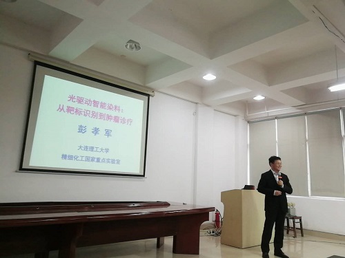 会上,彭院士重点阐述了“癌症诊疗用染料”在肿瘤成像与治疗领域的前沿应用研究;其主导研发的染料能很好地显现出肿瘤的准确位置和大小,对肿瘤的光动力学治疗有很好的疗效。彭孝军院士在讲座上还就DNA测序染料、血栓光动力治疗、柔性显示材料等原始创新表达了更多的畅想和展望。