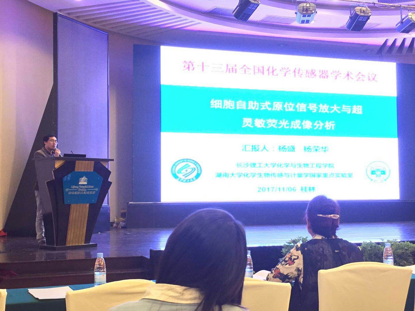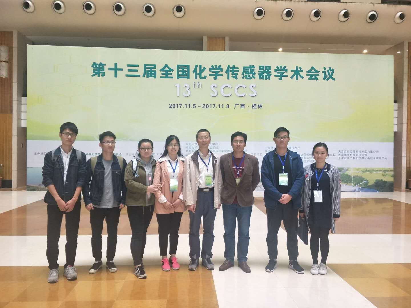 2017年11月5-8日,第十三届全国化学传感器学术会议(13th SCCS)在广西桂林召开,本次会议由中国仪器仪表学会分析仪器分会化学传感器专业委员会主办,桂林电子科技大学承办,湖南大学化学生物传感与计量学国家重点实验室、西南大学纳米材料及传感技术重庆市工程实验室、上海师范大学、江苏电分析仪器有限公司、广西师范大学和桂林理工大学等共同协办。本次会议旨在促进化学与生物传感器的学术交流与发展。开云官网化学与生物工程学院副院长曹忠教授、杨盛博士及研究生一行八人出席了本次会议。