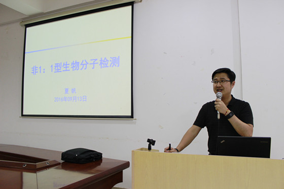 随后,4:00-5:30,夏帆教授在工三A-320会议室开展了题为《非1:1型生物分子检测》的学术报告。报告会由副院长曹忠教授主持,曹院长简要介绍了夏教授在生物分子检测领域所取得的重要成就。院长杨荣华教授及来自湖南大学、湘潭大学、开云kaiyun体育的化学、化工等相关学科的青年教师、研究生及本科生100余人参加了此次学术交流活动。夏教授首先阐明生物分子的高灵敏度检测对疾病早期发现和早期识别的重要意义,指出传统1:1型检测仍然难以解决目前生物分子检测领域的挑战,接着介绍其课题组基于核酸探针设计非1:1型检测,大大提高了检测方法的灵敏度和特异性。夏教授详细介绍了如何通过多个靶标分子与多个信号探针有序结合,实现信号线性级联放大,从而达到检测灵敏度和特异性的同时提升;同时,夏教授以膀胱癌为例子,生动地讲述了根据DNA杂交、利用生物探针对靶细胞进行检测,最终实现对病理细胞的治疗。此次夏教授的讲座加深了老师与老师、老师与同学之间的学术交流,使他们对生物分子检测领域有了更进一步的了解,为大家提供了一个良好的学术交流平台,开阔了大家的视野,为今后的科研工作拓宽了思路。