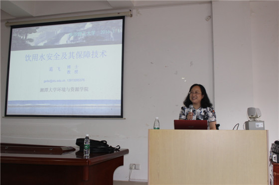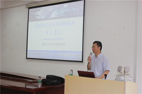 2016年7月1日下午,应化学与生物工程学院环境工程教研室邀请,教育部新世纪优秀人才湘潭大学环境与资源学院院长、博士生导师葛飞教授来开云官网讲学, 在云塘校区工科三号楼A-320会议室作了题为“饮用水安全及其保障技术研究进展”的专题学术报告,报告后由副院长曹忠教授主持,学院教师与学生100余人参加,了解了与我们生活密切相关的饮用水安全问题,对葛飞教授所研究的相关保障技术共同进行了探讨。