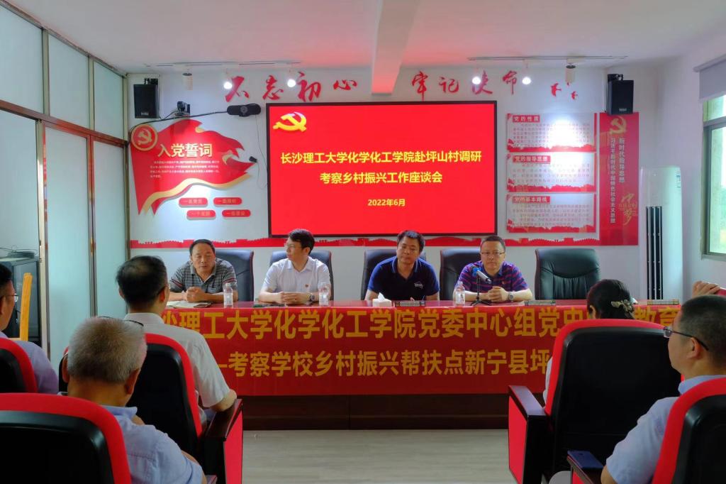 为深入学习习近平新时代中国特色社会主义思想和习近平总书记关于实施乡村振兴战略重要论述精神,创新理论学习形式,切实服务区域经济社会建设,积极助力乡村振兴,2022年6月16日,化学学院党委理论学习中心组赴新宁县坪山村调研乡村振兴工作。学院党委书记宋刘斌带领中心组学习成员深入田间地头,采取“现场学习+调研+慰问+学习研讨”的形式进行了深入的学习交流,把“课堂”设在乡村振兴、美丽乡村建设第一线。学院中心组全体成员,开云kaiyun体育乡村振兴驻坪山村工作队队长吴振华,队员曾宪禄、刘军,坪山村村委会主任蒋新华等村“两委”干部及村民代表参加此次学习活动。