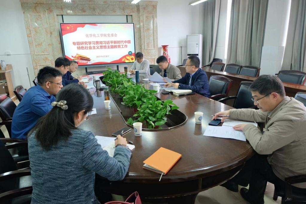 4月20日下午,化学化工学院在工科三号楼B318会议室召开党委会,专题研究学习贯彻习近平新时代中国特色社会主义思想主题教育工作。学院全体党政领导班子参加会议,会议由党委书记宋刘斌主持。