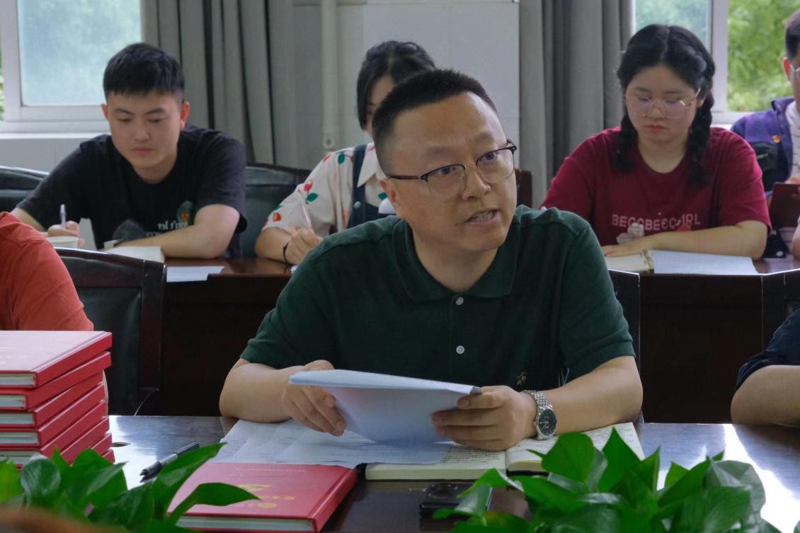 宋刘斌通报了学校党委委员、宣传部部长方琼一行6月2日来我院调研指导主题教育开展情况,围绕理论学习、“三会一课”,主题党日活动、宣传宣讲等对学院党支部日常工作提出了规范性要求。他强调,要按照学校党委的总体部署和学院党委主题教育工作安排,扎实推进党支部主题教育和党日活动相结合,以主题教育为契机,强化党支部政治功能和组织功能,对标对表关于党支部建设的各项要求,查摆存在问题,制定有效措施,抓好问题整改,扎实推进党支部标准化规范化建设,有力落实“七个有力”要求。