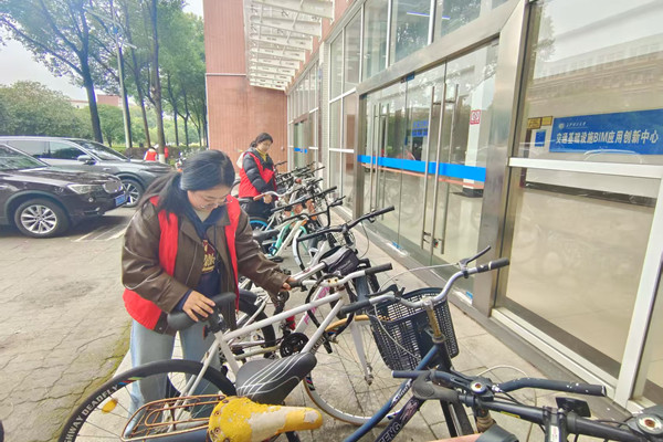 活动伊始,党员们兵分两路。一队党员奔赴自行车停放点,对散乱的单车进行“精梳细理”。凌乱的单车在党员们的巧手下被逐一扶正、对齐,停车区焕然一新,展现了党员们精细管理与服务师生的担当。