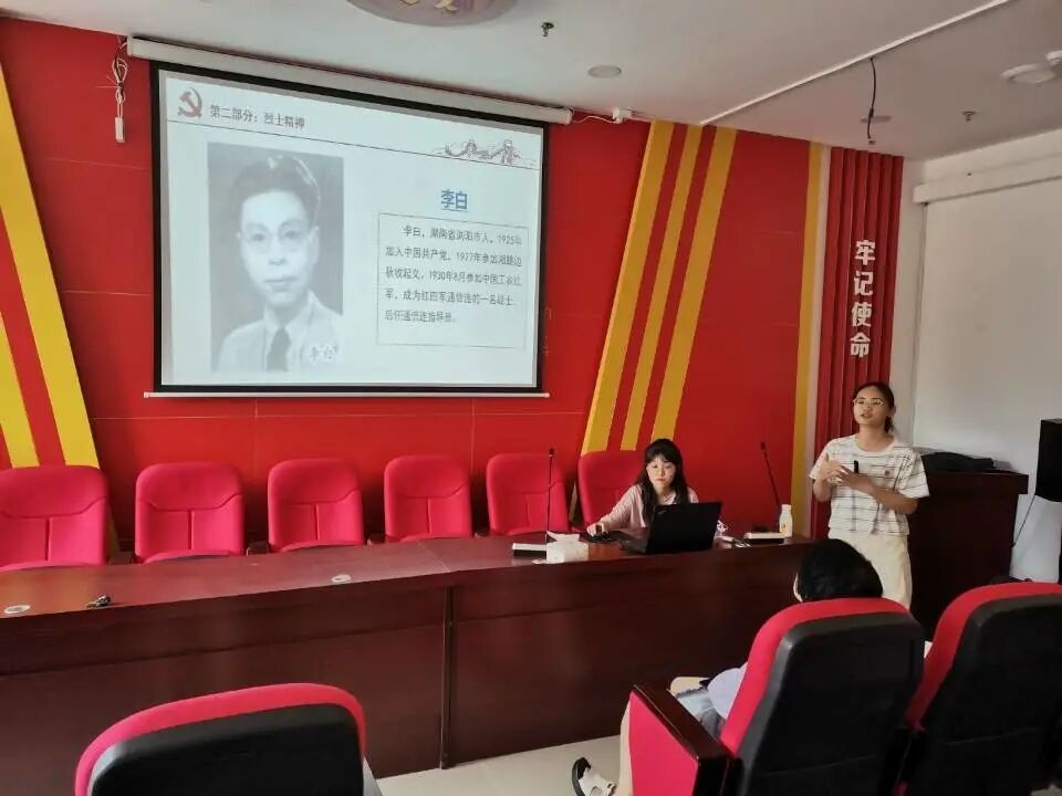 活动中,学生党员宣讲员们以动漫、音视频等丰富的素材,带领小朋友们学习了夏明翰、左权、李白、彭德怀、贺龙等湖湘英雄的事迹与精神。宣讲员的生动的讲述,将中国共产党的精神锻造史和自我革命史立体式的呈现在在场小学生面前。听完夏明翰的故事后李涛同学用稚嫩的声音说,“夏明翰哥哥为了革命不怕流血和牺牲,才换来我们今天的幸福生活,我们要努力学习,成为对祖国有用的人。”
