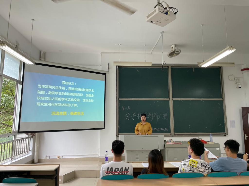 为丰富研究生生活,营造良好的校园学术氛围,激发学生的科技创新意识,加强全校研究生之间的学术文化交流,加深全校研究生对化学新材料的了解,化学与食品工程学院于6月28日云塘校区工三A205开展以“低碳生活”为主题的研究生学术文化节之第八届研究生分子模型创新大赛。本次比赛由汤甜主持,由陈康道、胡子斌、蒋峥瑾、周群怀、赵野担任评委。