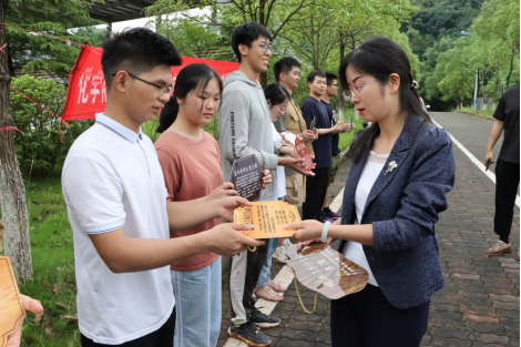 班级树牌授予环节,学院副院长陈启杰、副院长喻林萍、校后勤服务管理中心副主任高顺利分别给各班集体、党支部授予学院定制的班级树牌,名牌上记录着大家对未来的寄语和期望。