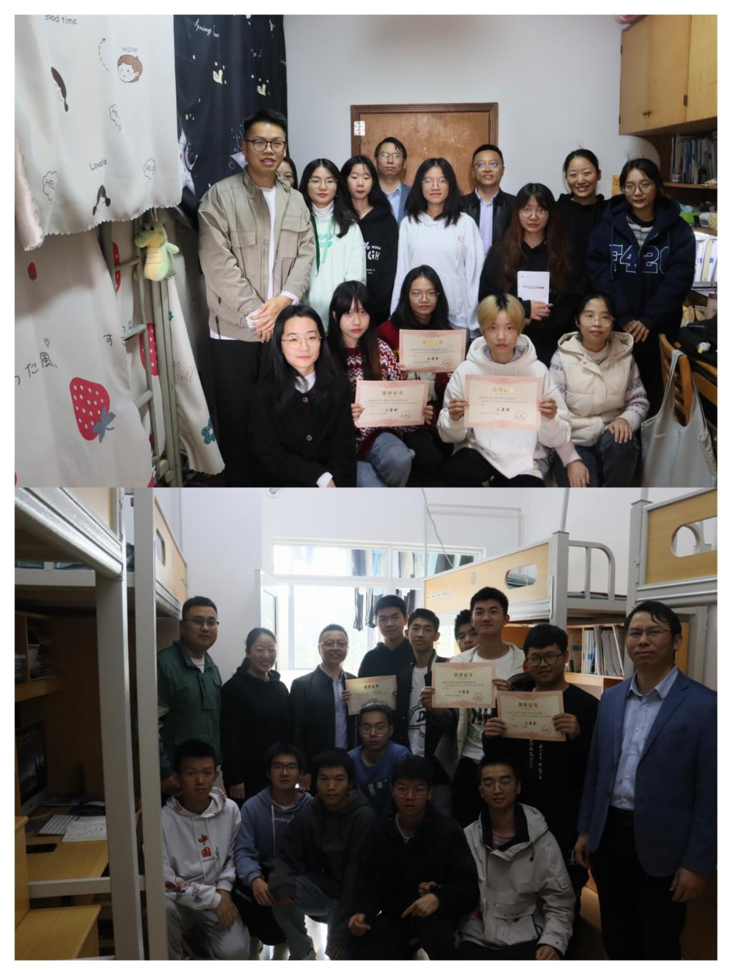 前期学院开展了以“践行党的二十大,消防安全伴我行”为主题的宿舍消防安全知识答题竞赛,使消防安全知识入脑入心,全院近200余间宿舍参与本次答题竞赛。当天上午院领导宋刘斌、张跃飞、陶双来到学生宿舍为获奖学生颁发荣誉证书。