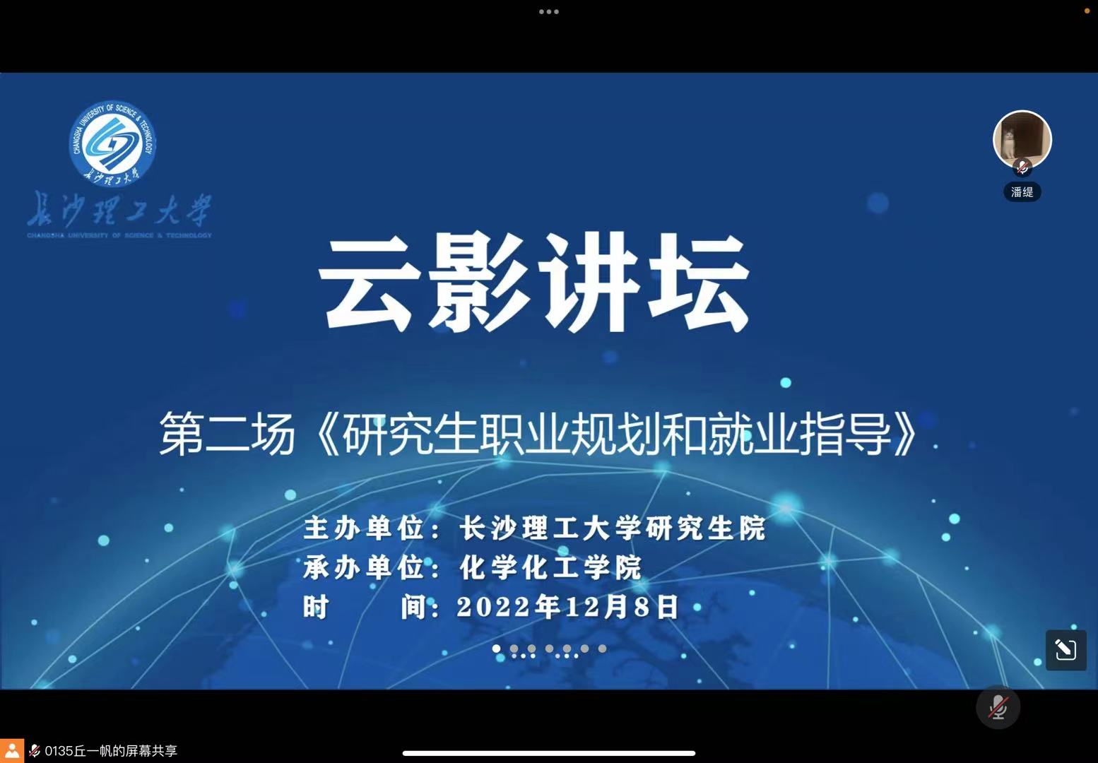 为提升各位同学职业生涯规划意识,明确学业目标,由开云kaiyun体育主办,化学化工学院承办的第十四届研究生云影讲坛化学化工学院分论坛第二期于12月8日晚在线上召开,本次讲座邀请了湖南华电常德发电有限公司党委委员、副总经理、总法律顾问刘宇峰先生担任主讲人,由辅导员孙佳乐和研会副主席李鹏云主持。