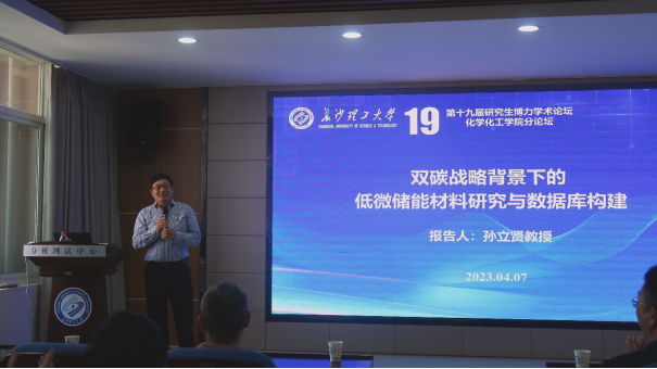 2023年4月7日上午10时,以“双碳战略背景下的低微储能材料研究与数据库构建”为主题的第十九届研究生博力学术论坛化学化工学院分论坛,在新能源大楼3B301召开,本次论坛由桂林电子科技大学博生导师孙立贤教授主讲,化学化工学院喻林萍副院长、卿志和副院长、曹忠教授等老师及30位研究生参加。