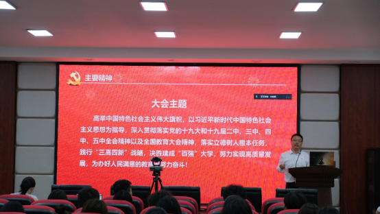 9月22日15:00,化学化工学院党的二十大精神学习暨校第四次党代会精神学习在云塘校区工三A320召开,本次学习由学院党委书记宋刘斌主讲,2023级全体新生参加。