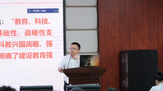 首先,通过哲学家康德的一段话引出我们作为当代青年人为何要向党组织靠拢的原因,宋刘斌全面详细介绍学院党委以及加入党组织的要求。随后,宋刘斌通过提问的方式,带领新生温习习近平总书记在党的二十大报告的论述:“教育、科技、人才是全面建设社会主义现代化国家的基础。”最后,他指出,学校正是围绕“教育、科技、人才”之间关系开展,不仅要办好人民满意的教育,更要完善科技创新体系、深入实施人才强国战略,培养“底色亮、实践新、有情怀、敢担当”的长理青年学子。
