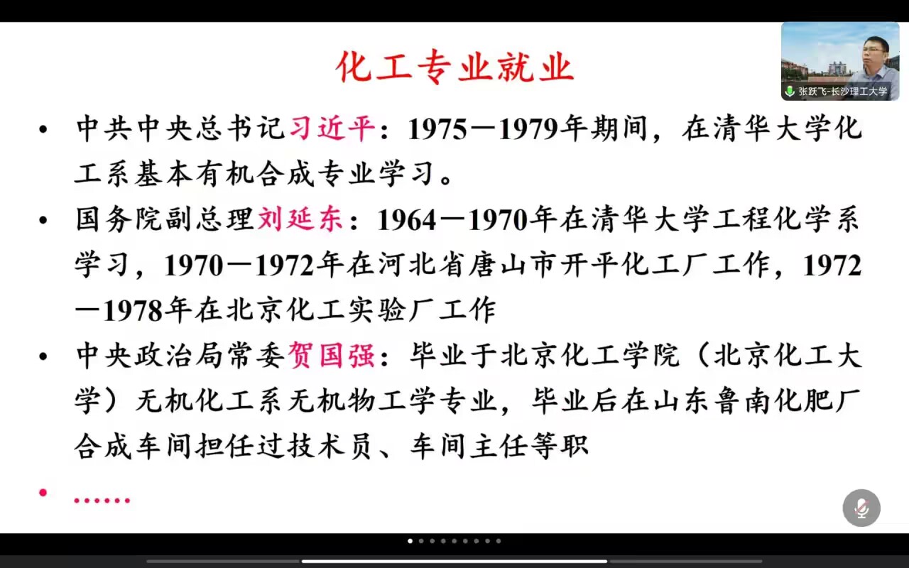 (张跃飞教授主讲,化学工程与工艺专业本科新生线上参会)