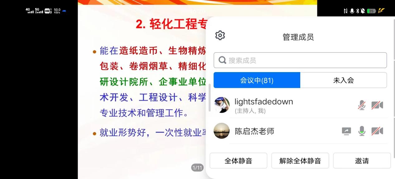 轻化工程专业介绍会由化学化工学院副院长陈启杰主讲,陈院长详细介绍了轻化工程专业的专业特色、课程设置及发展前景等内容。会议接近尾声同学们通过聊天和连麦的方式就专业未来就业和考研的方向等问题向陈院长进行了请教,陈院长做一一解答。本次会议解决了同学们关于专业“学什么、干什么、怎么学”的一些迷茫与疑惑,也为同学们以后考研就业指明了方向,为同学们更加从容、自信、坚定地投入未来学习生活奠定了坚实的基础。