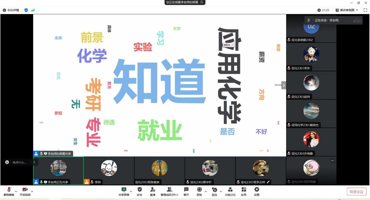 (李宇春教授主讲,应用化学专业本科新生线上参会)