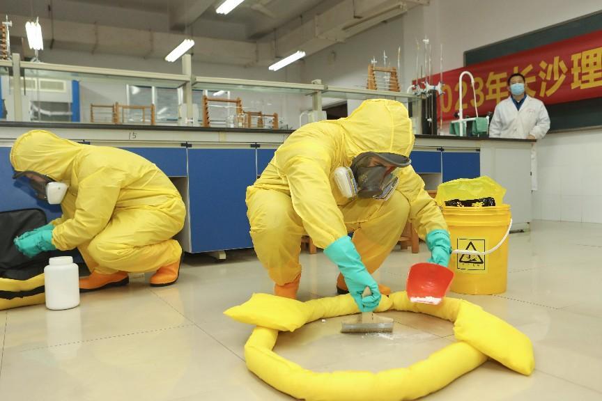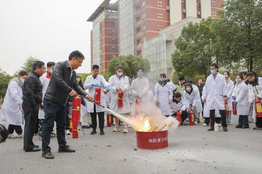 随后,在实验室浓盐酸泄漏应急演练中,模拟了学生在实验过程中可能遇到的各种险情和风险,相关专家指导学生在遇到问题时,如何进行应急处理、开展自救;实验室安全负责人、实验室所属学院如何紧急响应,演练贴合实际,环环相扣,针对性和实用性强。并在危化品泄露演练结束后开展了实验室消防灭火实操演练,专家现场教授使用不同类型灭火器,师生参与热情度极高。