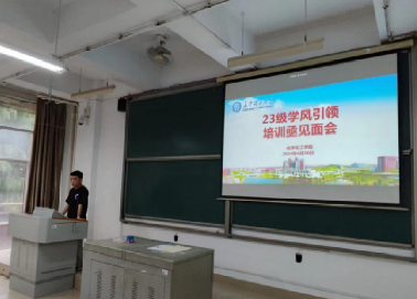 第二部分为2023级个人学风引领培训暨见面会,由2021级研究生张益弘、辅导员江洁主持,相关2023级本科生及研究生参加。