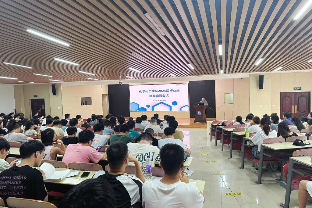 为提前谋划2025届毕业生就业工作,促进2025届毕业生高质量充分就业,9月6日下午,化学化工学院在工科三号楼A201召开了2025届毕业生就业动员大会。学院党委副书记、副院长李家春、就业专干张航出席会议,全体2025届毕业生参加,会议由张航主持。