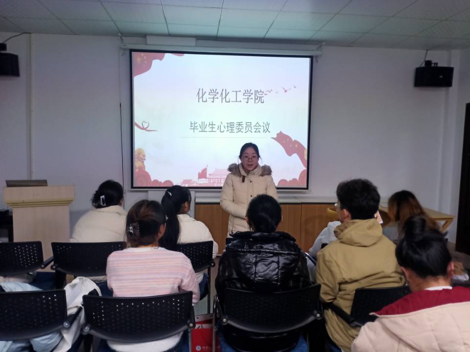 12月5日下午17:00,化学化工学院心理部组织毕业生心理委员和研究生班长、心理委员,于工三B448召开毕业年级心理委员能力培训,由心理辅导员江洁主讲,共计15人。
