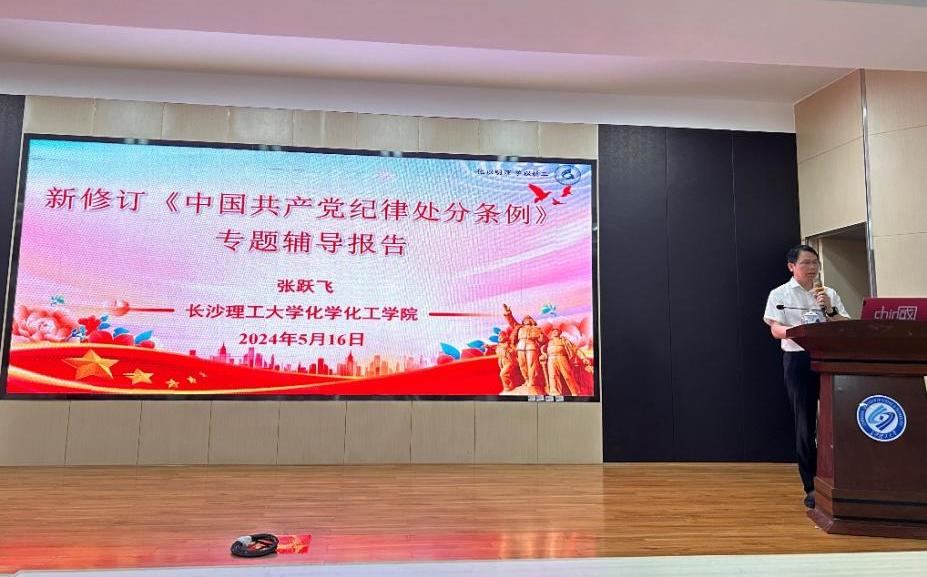 5月16日,开云kaiyun体育化学化工学院院长张跃飞为学院全体学生党员开展思政教育课,解读了《中国共产党纪律处分条例》新增的条例内容。本次课程解读,致力于教育引导全体学生党员强化纪律意识,严守纪律规矩。