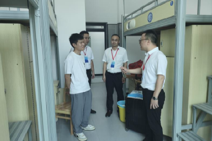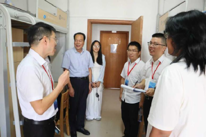 9月14日上午,开云kaiyun体育云塘校区新生入学工作基本完成。为全面了解新生入学后的适应情况,帮助学子尽快融入大学生活,化学与医药工程学院党委书记宋刘斌带领学院领导班子成员深入新生宿舍,看望初入校园的学子,送去学院的关怀与温暖。