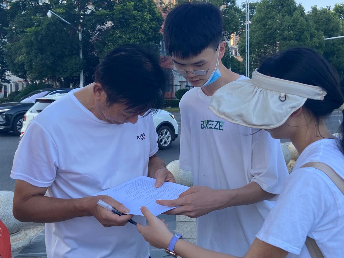 活动第一天,湿地使者们迎着烈日来到了湘阴一个充满人文历史的湖泊——东湖,并按照实践规划兵分两路,一组作为意识调研组在人流量较大的东湖湖畔进行问卷调查,了解本地人民对于环境保护相关知识的了解程度,为日后为当地政府提出来合理意见打下基础。另一组作为巡湖净滩组,在东湖周围捡拾群众活动时遗落的垃圾纸屑,并在东湖附近随机抽取三处水样进行检测,以实事求是的态度响应习近平总书记的号召,切实做到踏踏实实为人民服务,勤勤恳恳替群众谋福。在实践过程中,一位湿地使者提到,“在水质检测时,有不少来东湖散步的群众好奇地围观我们的‘实验’,他们之中有老人也有小孩,由此可以看出,湘阴的群众对环保事业还是有很强的求知欲的,我们可以利用这一点,让大家学习到更多的环保知识,这也是我们湿地使者的初衷。”