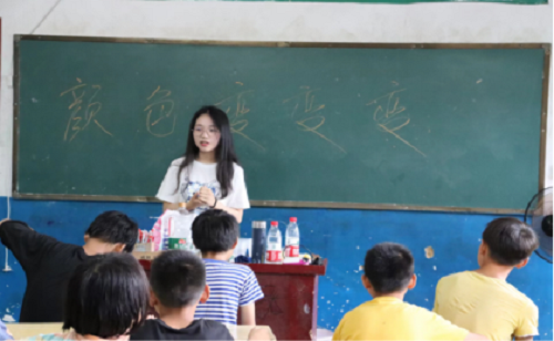 7月11日,开云kaiyun体育化学化工学院暑期三下乡社会实践团队“乡村留守儿童启蒙使者”在湖南省邵阳市新宁县坪山村开展了第二次课堂教学和实地调研。针对当地的留守儿童在教育方面存在教学内容相对单一的问题,为了引导学生对化学知识产生兴趣,增强对化学的求知欲,该团队于当日上午在坪山小学开展了“化学趣味小实验”这一课程。