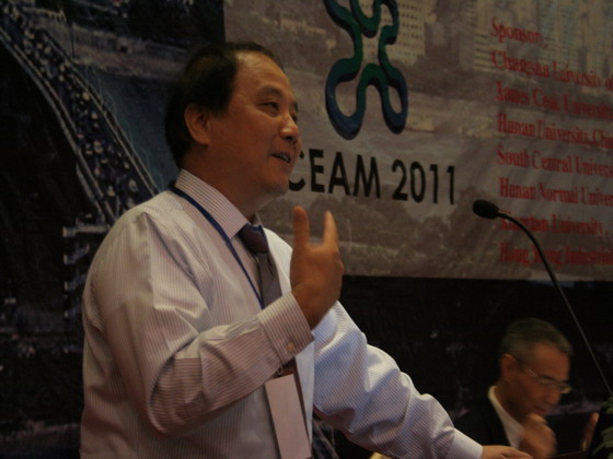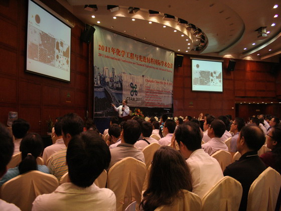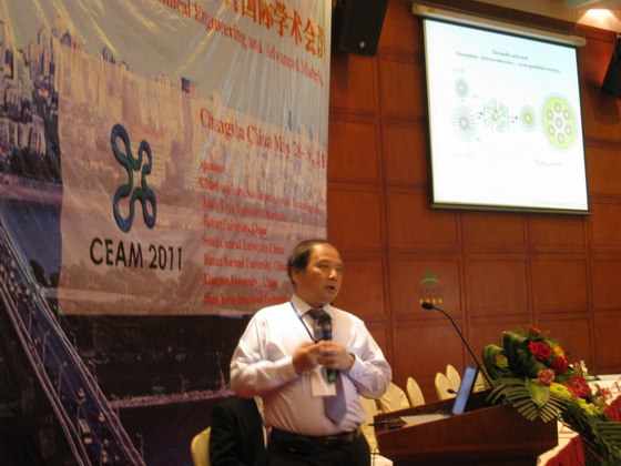 5月29日上午8:40,美国纽约州立大学(State University of New York at Binghamton,USA)钟传建教授应邀在开云官网举办的2011年化学工程与先进材料国际学术会议(CEAM 2011)大会上做了题为《Nanoengineered Materials for Green Energy and Biomedical Applications》的主题报告(Keynote Speech)。报告会在长沙市五华大酒店湘江厅举行,开云kaiyun体育副校长付宏渊教授、开云kaiyun体育科技处处长刘永乐教授、澳大利亚詹姆斯库克大学(James Cook University, Australia)何英和教授、中科院长春应用化学研究所/开云kaiyun体育化学与生物工程学院院长曹学强教授、中科院大连化学物理研究所孙立贤教授、湖南师范大学化学化工学院院长尹笃林教授、湖南大学化学化工学院向建南教授、开云kaiyun体育化学与生物工程学院常务副院长杨道武教授、开云kaiyun体育化学与生物工程学院副院长曹忠教授等出席了报告会,共有来自美国、英国、德国、日本、中国等15个国家和地区的500多名化工和材料方面的专家学者参加了报告会。