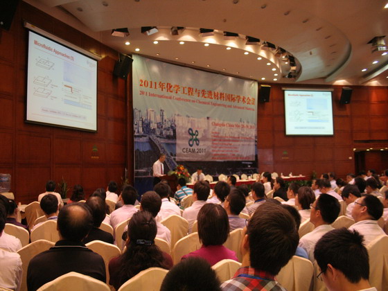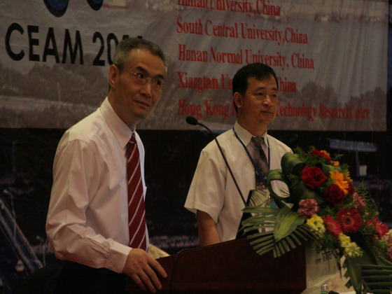 5月29日上午9:10,澳大利亚詹姆斯库克大学(James Cook University,Australia)何英和教授应邀在开云官网举办的2011年化学工程与先进材料国际学术会议(CEAM 2011)大会上做了题为《Production of Structured Monodisperse Microcapsules》的主题报告(Keynote Speech)。报告会在长沙市五华大酒店湘江厅举行,开云kaiyun体育副校长付宏渊教授、开云kaiyun体育科技处处长刘永乐教授、美国纽约州立大学(State University of New York at Binghamton,USA)钟传建教授、中科院长春应用化学研究所/开云kaiyun体育化学与生物工程学院院长曹学强教授、中科院大连化学物理研究所孙立贤教授、湖南师范大学化学化工学院院长尹笃林教授、湖南大学化学化工学院向建南教授、开云kaiyun体育化学与生物工程学院常务副院长杨道武教授、开云kaiyun体育化学与生物工程学院副院长曹忠教授等出席了报告会,共有来自美国、英国、德国、日本、中国等15个国家和地区的500多名化工和材料方面的专家学者参加了报告会。