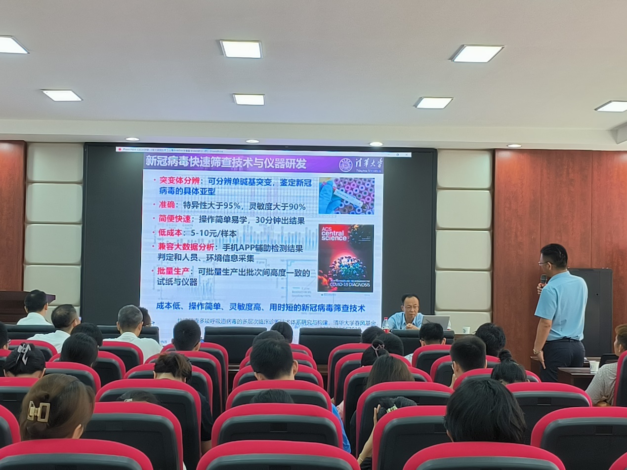 李院士以近年来发生的重大突发公共卫生事件(非典、新冠、猴痘疫情)为背景,提出快速、灵敏、便捷检测病毒并获取特异性生化信息的重要性,重点介绍了非典病毒抗原免疫检测、新冠病毒及其变异株的快速检测、猴痘病毒的基因进化监测等一系列研究成果,为与会师生带来了一场精彩的学术盛宴。报告最后,师生踊跃与李院士进行学术交流和探讨,李院士针对大家的问题作了详细的解答,让在座师生受益良多。