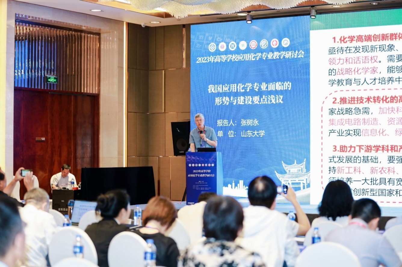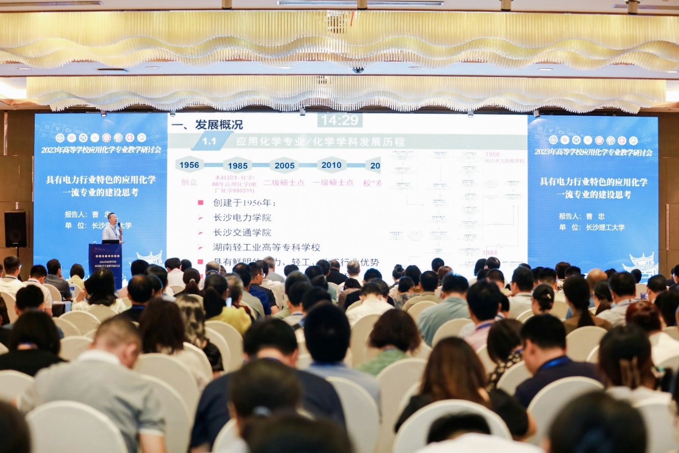 2023年7月21-23日,在长沙市融城花园酒店四楼会议室召开了由教育部高等学校化学类专业教学指导委员会主办、中南大学承办及开云kaiyun体育、湖南工业大学、湖南理工学院、湘南学院、湘潭大学、衡阳师范学院、湖南科技大学等协办的2023年高等学校应用化学专业教学研讨会。出席会议的有教育部高等学校化学类专业教学指导委员会和化工类专业教学指导委员会的委员、高等院校学者、出版社、相关公司企业主要负责人等131家单位的350余名代表。