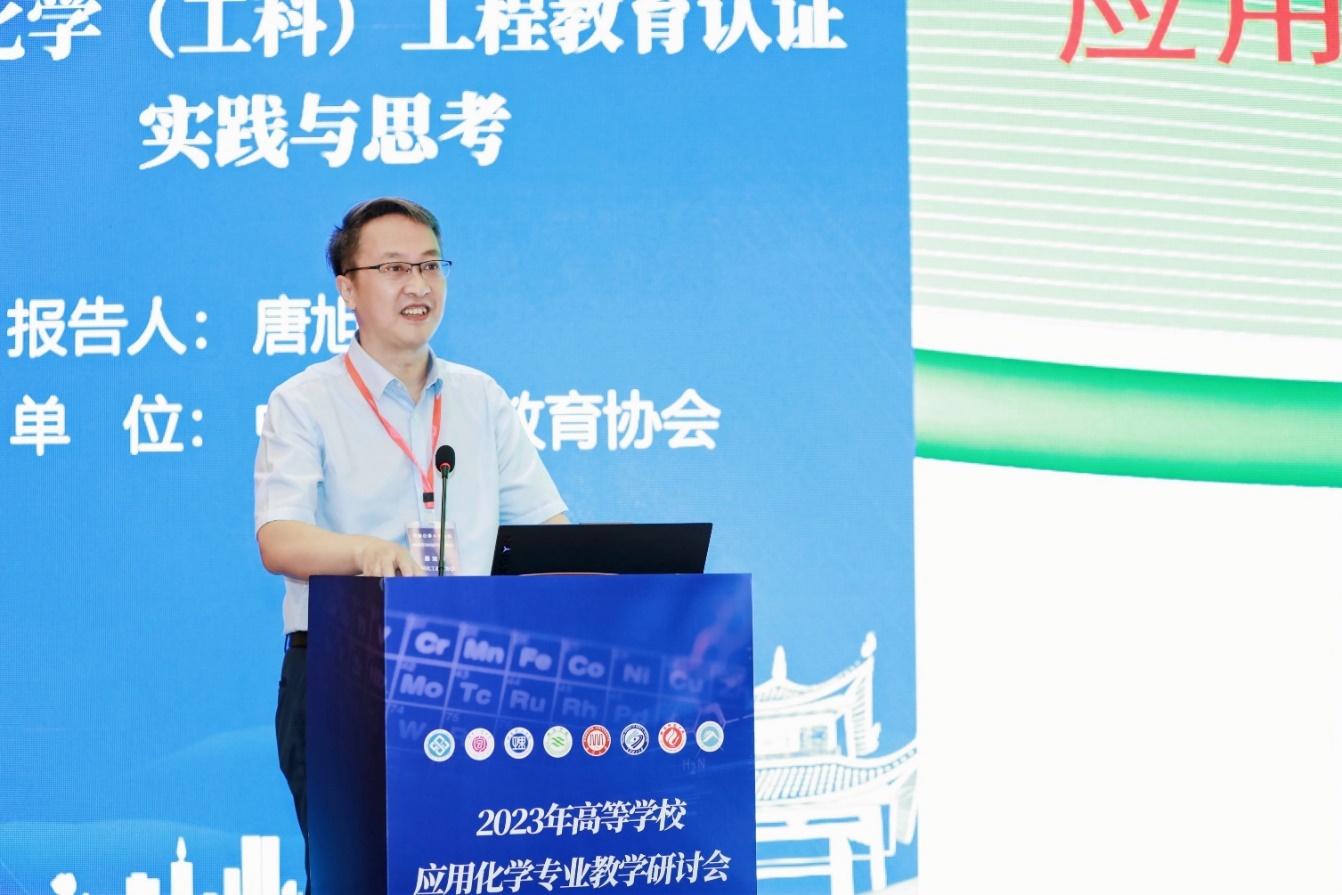 中国化工教育协会副秘书长唐旭华教授做了《应用化学(工科)工程教育认证实践与思考》的大会首报告,强调了工程教育认证的核心理念和认证标准下的培养体系,阐述了工程教育认证持续改进的逻辑关系,提出了工程教育认证工作的主线和底线要求,详细论述了工程教育认证工作中很多细节问题的逻辑、关注项及实现要点等关键问题。